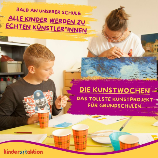 Wir sind gespannt auf die wunderschönen Kunstwerke, die unsere Schüler schaffen werden! Weitere Informationen zum Projekt finden Sie auf www.KinderArtAktion.de oder im folgenden Video: