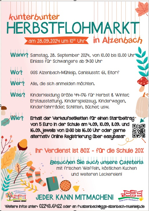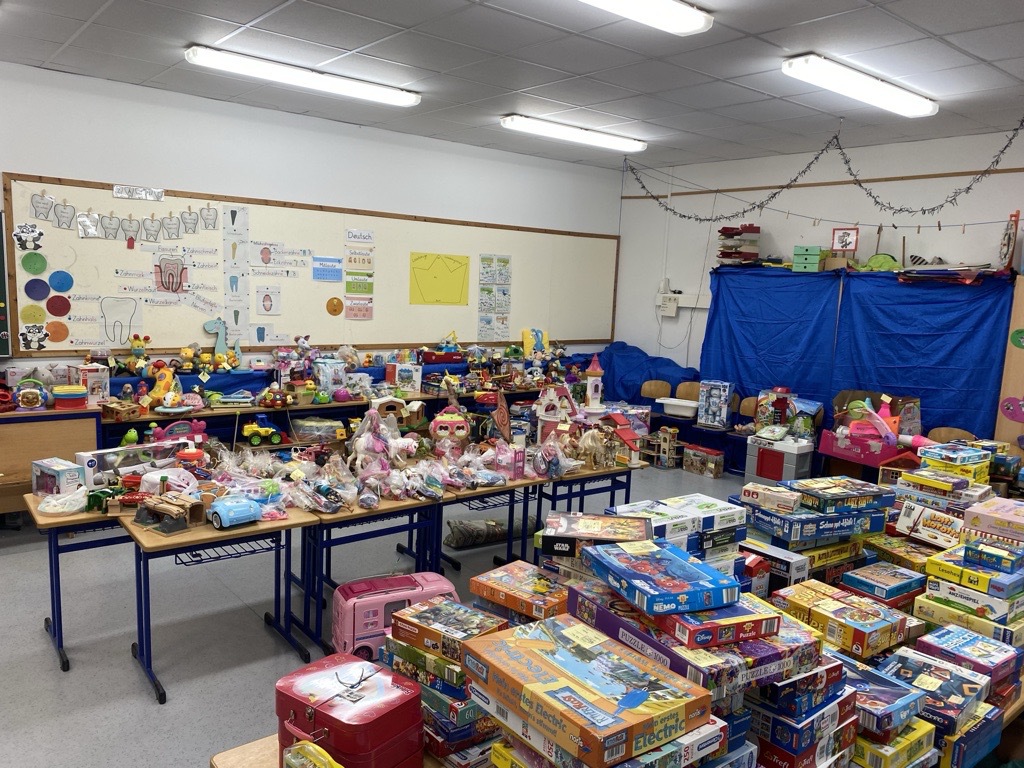 Am 28.10.2023 veranstaltete unser Förderverein wieder einen großen und gut besuchten Herbstflohmarkt. Baby- und Kinderkleidung, Bücher, Spielsachen und vieles mehr wurden zum Verkauf angeboten. Dank der großartigen Unterstützung vieler Eltern konnten wir in der Cafeteria ein tolles Kuchenbuffet und frische Waffeln anbieten. Wir danken allen Eltern, die durch ihre Kuchenspende oder einen Dienst den Flohmarkt ermöglicht und zu einem Erfolg gemacht haben!