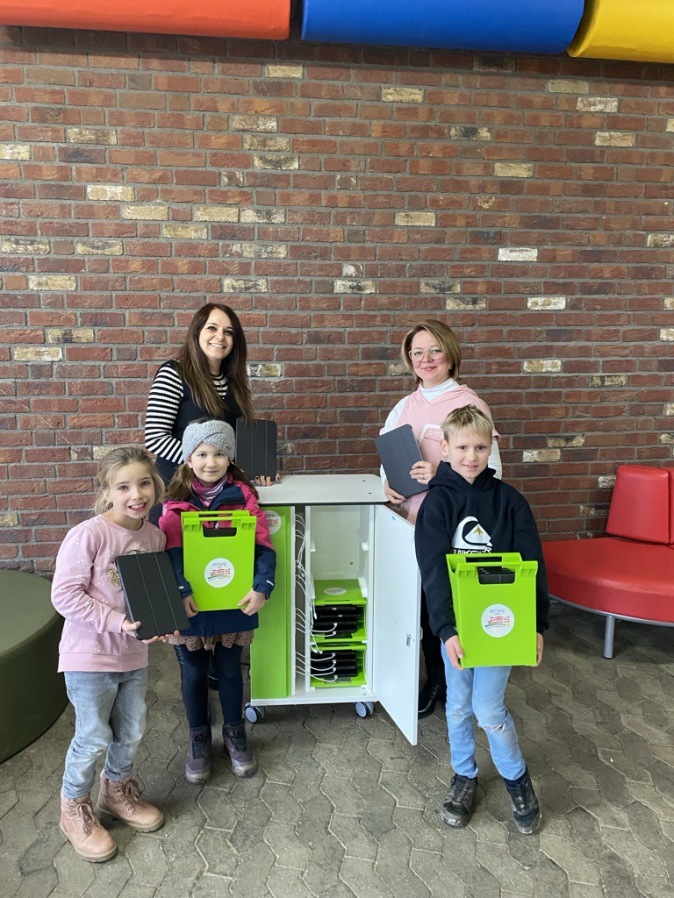 Um die Medienausstattung der Schule zu verbessern konnten wir im November 2024 einen iPad-Wagen mit 16 iPads anschaffen. Hiermit ermöglichen wir den Kindern einen besseren Zugang und einen häufigeren Einsatz im Unterricht.