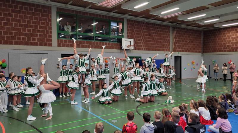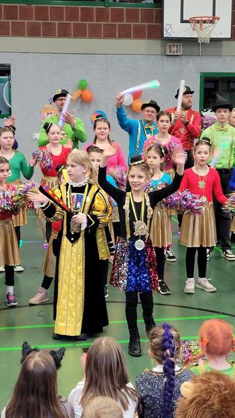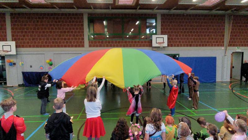 An Weiberfastnacht stieg in der bunt geschmückten Turnhalle unsere große Karnevalsparty. Bunt verkleidete Kinder und LehrerInnen bevölkerten die Turnhalle. Nach einem kurzen Warmup erschien das Prinzenpaar und stimmte uns auf die Feier ein. Turmgarde und Mokkakännchen folgten mit hervorragenden Tanzperformances. Zwischendurch führte jede Klasse etwas vor. Wir sahen Tänze, einen Schwungtuch- Auftritt, eine Affenshow, eine verrückte Band und SynchronschwimmerInnen. Jeder Programmpunkt war sehr gelungen und die Stimmung war super!